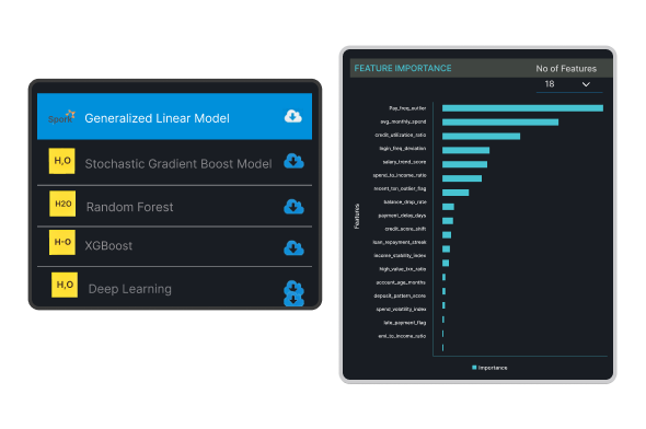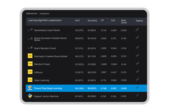 Deploy any framework (Python, R, Spark, SAS) with maker–checker, versioning, and one‑click rollback.